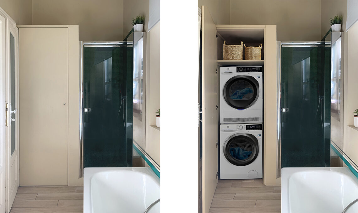 Ecco la soluzione per riprogettare il bagno in modo smart trovando spazio per una colonna lavanderia!