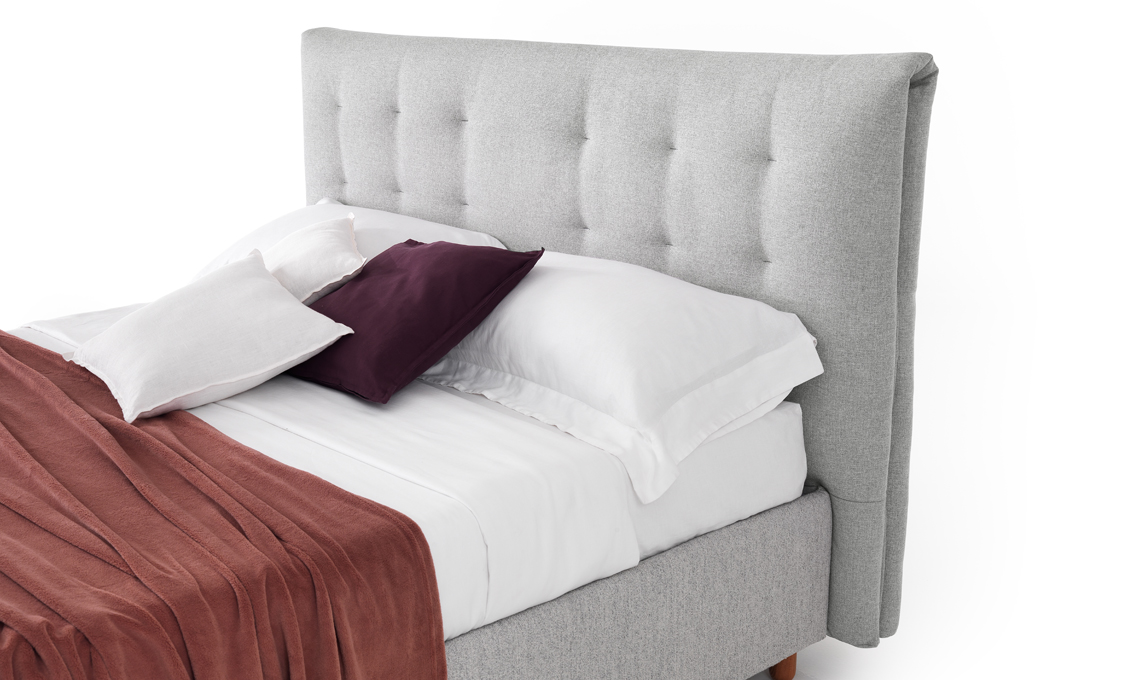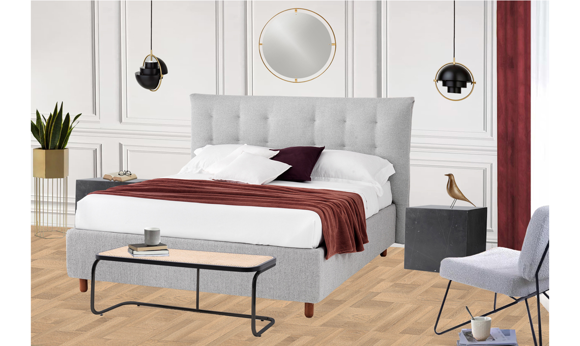Nell'immagine in alto puoi vedere l'ambientazione che ho creato per il letto Paddy, caratterizzato da una testata arricchita di impunture che richiama l'estetica ma anche il comfort dei materassi.