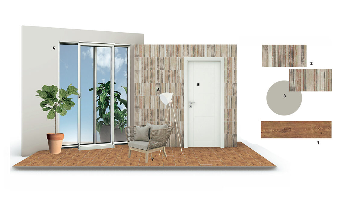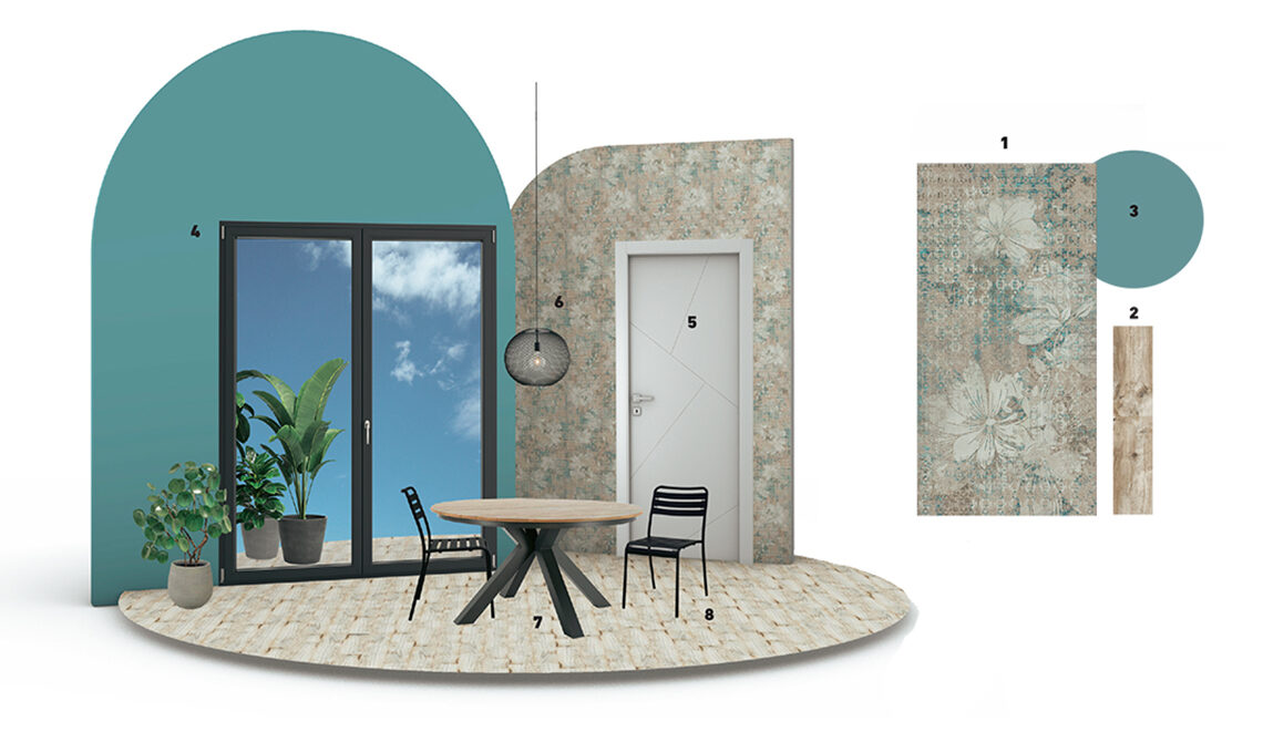La zona pranzo in stile Urban. Accostamenti di grande attualità e che attirano l’attenzione: a pavimento, un grès effetto legno; sulla parete della porta, piastrelle décor dai toni soft. L’altra parete, su cui si trova la finestra, è di un blu intenso. Copia l’abbinata finestra nera più porta grigio chiaro: chic e di grande effetto! L'angolo lettura natural. Cosa c’è di più rilassante di un pavimento dal caldo color legno? Per un effetto non troppo classico, per la parete della porta scegli un rivestimento décor. E aggiungi porta e finestre all white, su una parete grigia: così la luce naturale risulterà amplificata in modo naturale e leggero.