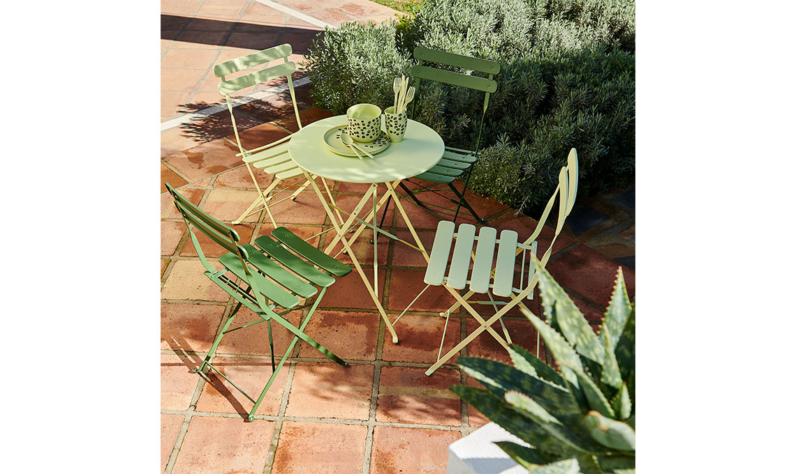 Vogliamo ricreare uno spazio bello e confortevole in giardino? Chi non ha mai desiderato un’amaca da appendere sotto gli aceri canadesi (Bahamas Amaca) o una lanterna (Abid Lanterna) per creare un’atmosfera romantica sotto al pergolato di glicine? Mentre di fianco al gelsomino un tavolino per due con sedie pieghevoli (Kapas) o un altro in stile francese (Imperial Bistro) verde eucalipto? Lungo il viale d’ingresso sarebbe perfetta una panca per le lunghe meditazioni al sole (Cros Panca) mentre vicino alla nuova piscina non possono mancare comode sdraio (Relax) e tutto ciò che serve per un aperitivo serale gustoso, dalle candele alla citronella (Citronella) al set di bicchieri in colori diversi per non sbagliarsi mai (Bora), alla campana coprivivande per tenere lontani gli insetti (Guinea).