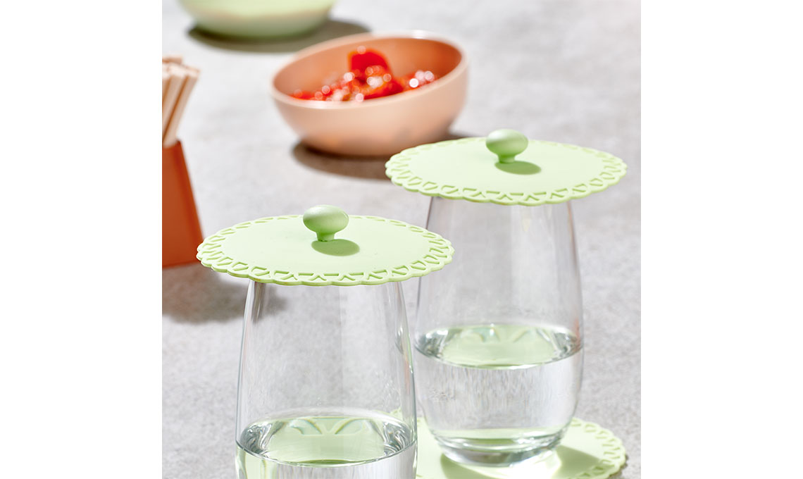 Vogliamo ritrovarci in un luogo esotico semplicemente varcando la porta finestra sul terrazzo? La collezione Oasis è decisamente perfetta con il set di coperture dei bicchieri in tre colori: arancione, verde, beige