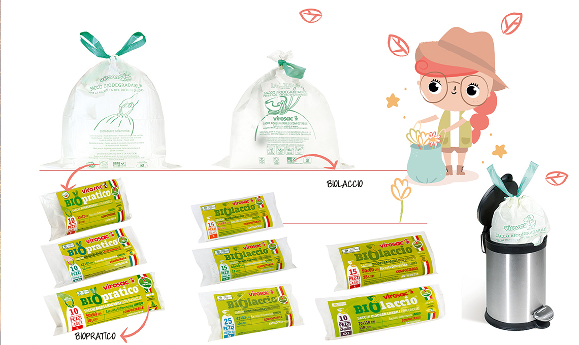 I sacchetti Virosac assicurano non solo la praticità ma anche la totale biodegradabilità e compostabilità.