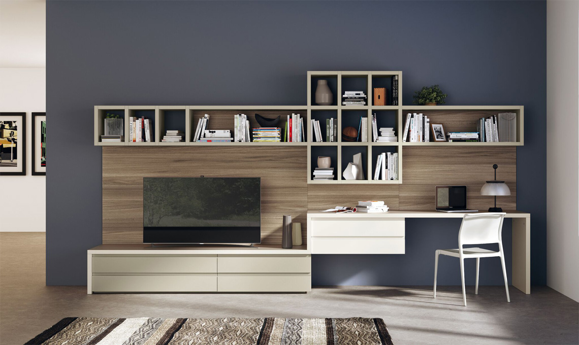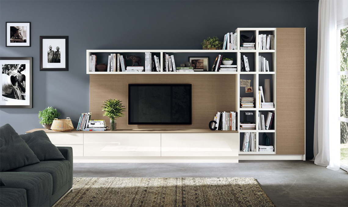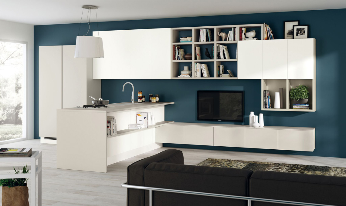 Anche la soluzione dei Contenitori Componibili può essere declinata sia per il living integrato sia per quello indipendente. Nel primo caso i contenitori si innestano sulle forme della cucina e sono coordinati alla sua atmosfera. La composizione è slanciata e asseconda, con altezze variabili, le esigenze della casa, lasciando la massima libertà creativa con l'accostamento di forme e colori. Nel caso di living indipendente, si può giocare con l'immaginazione: i moduli garantiscono la massima libertà di composizione, senza vincoli di integrazione con la cucina.