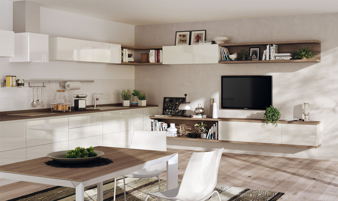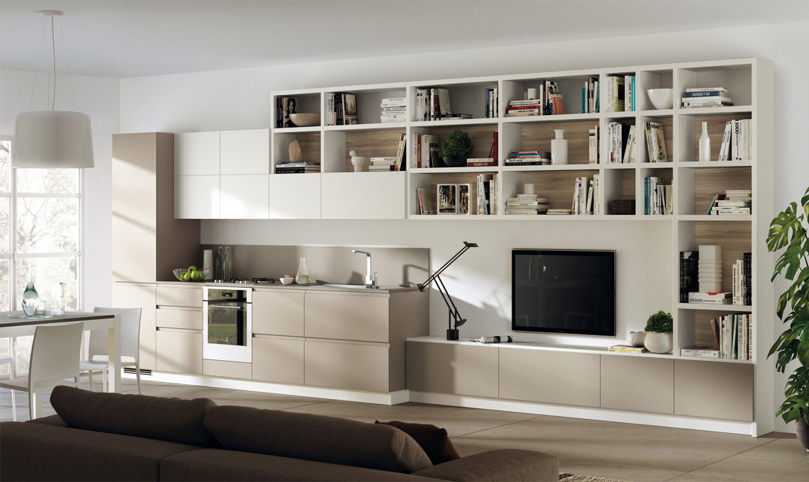 L'organizzazione e la razionalizzazione degli spazi sono fondamentali, insieme a un nuovo concept di casa che vuole superare la frammentarietà per integrare "osmoticamente" gli ambienti in una nuova idea di "total living", sia per gli ampi open space, sia per i piccoli appartamenti. Scavolini Living quindi propone soluzioni intelligenti per integrare il soggiorno alla cucina creando un ambiente piacevole e perfettamente organizzato, da vivere a tutto tondo, dove si condividano le cene tra amici, i giochi da tavolo e i compiti dei ragazzi.