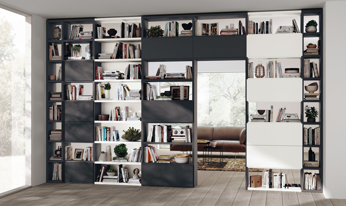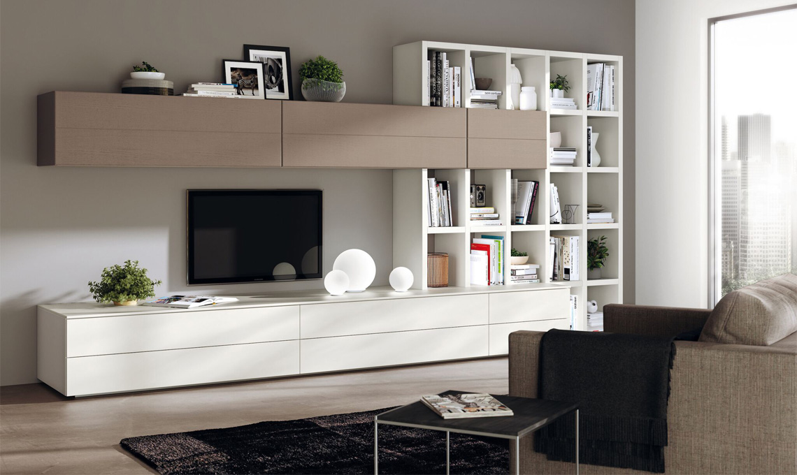 Per il living indipendente, poi, esiste anche la possibilità della Parete Fluida modulo 365, che consente di armonizzare linee verticali e orizzontali con ogni tipo di anta e apertura. L'ideale per ambienti in armonia, ma ben distinti.