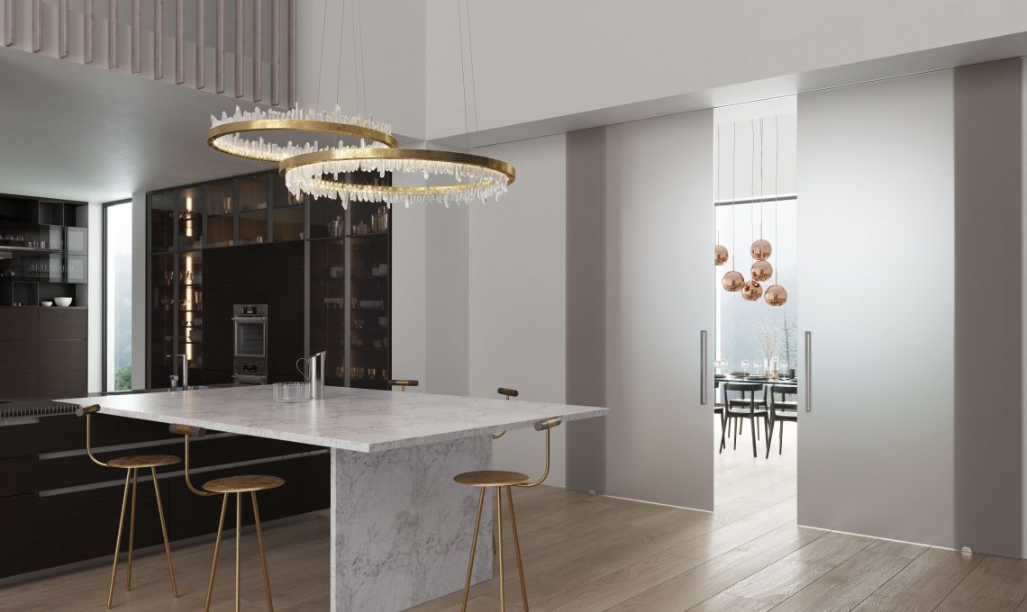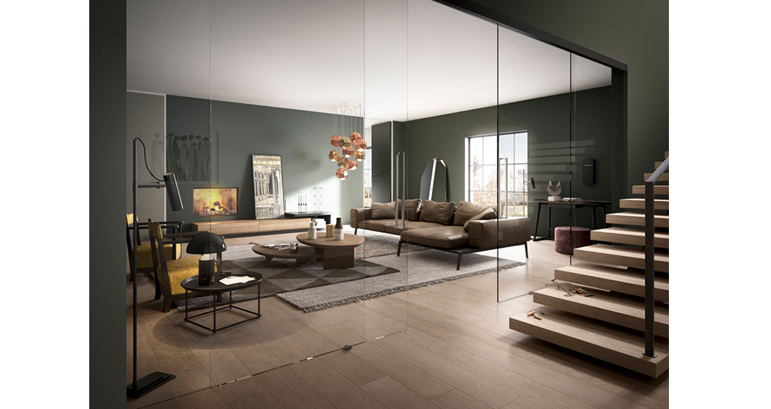 FerreroLegno firma un sistema di pareti scorrevoli abbinabili anche a pannelli fissi che moltiplica le potenzialità degli ambienti e caratterizza la casa con un tocco di design e raffinatezza