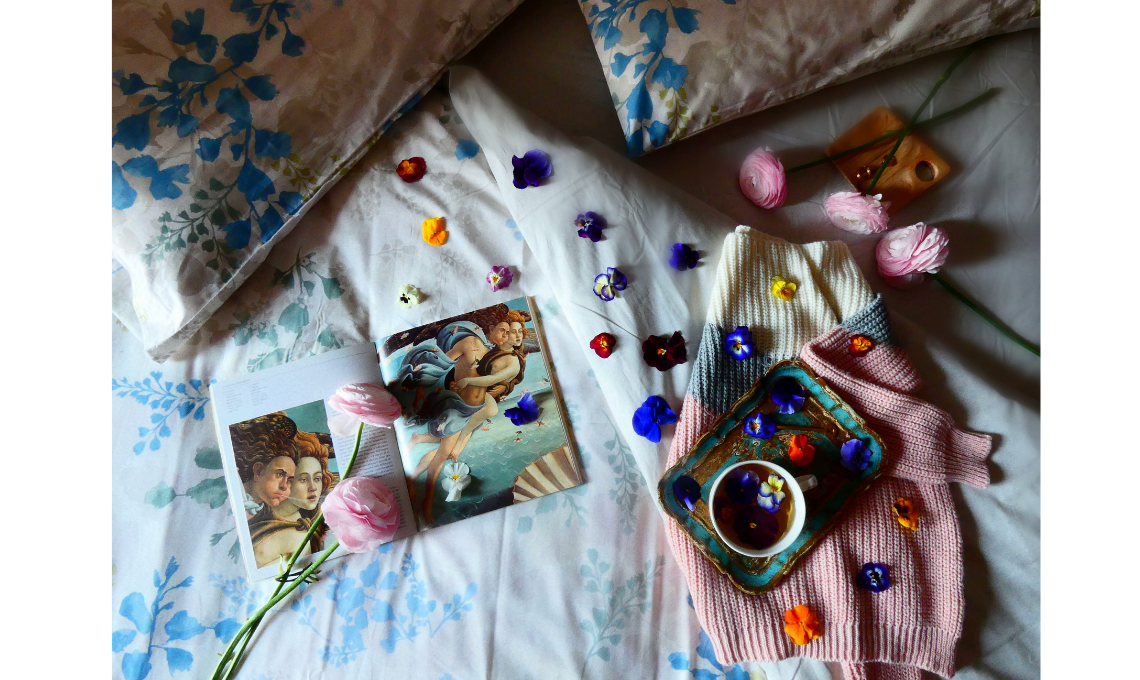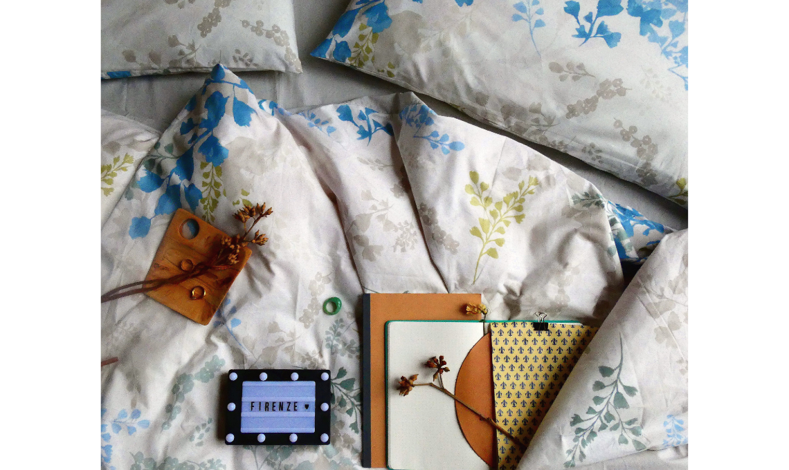 TRA SOGNO E REALTA’. Un risveglio lento, l’eco di sogni lasciati a metà. La strana sensazione che il mondo onirico e quello reale si incontrino lasciando aperte le porte dell’immaginazione. Il nostro letto diventa un micro mondo composto da elementi che ci fanno sentire leggeri e ci accompagnano verso piccoli rituali in cui tutti i sensi vengono appagati. Le morbide lenzuola a motivo floreale ispirano delicate composizioni che creano il contesto perfetto per continuare a sognare.