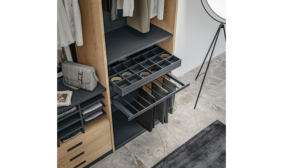 Le continue implementazioni estetiche, funzionali e soprattutto modulari, che portano ad unaversatilità dimensionale e compositiva, consentono l’integrazione in qualsiasi ambiente, garantendo la massima capacità. Le cabine armadio Giessegi sono state create per adattarsi all’utente e alle sue esigenze, sia estetica che organizzative.