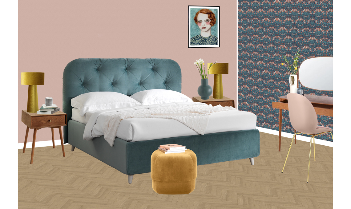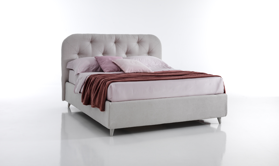 Il letto Brigitte di PerDormire, che qui in alto vedi nell'ambientazione che ho realizzato, ha una testiera capitonné evergreen. È configurabile per quanto riguarda rivestimento, colore, piedini e rete. È proposto anche nella versione Brigitte H20 con contenitore più compatto e piedino alto 20 cm.
