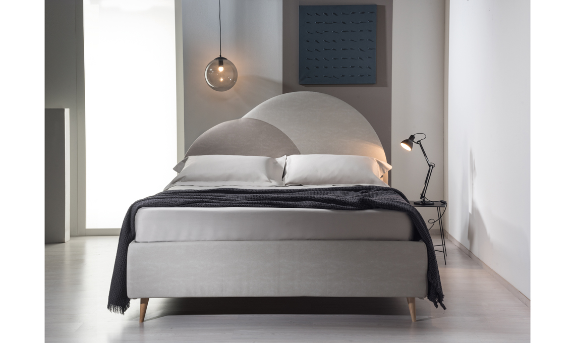 Un'ambientazione da sogno per il letto Abbraccio, parte della collezione Una Fiaba PerDormire e parte del progetto Design Democratico Italiano, lanciato nel 2018, con un'attenzione particolare non solo all'estetica e al prezzo, ma anche a comfort e funzionalità.