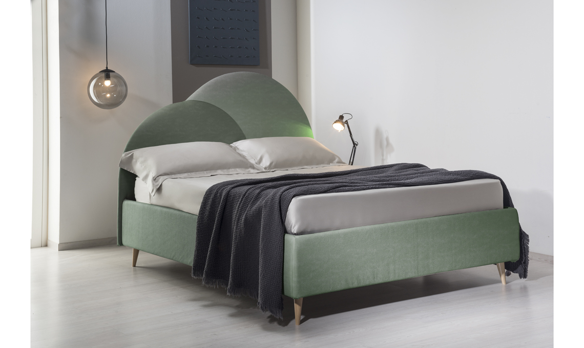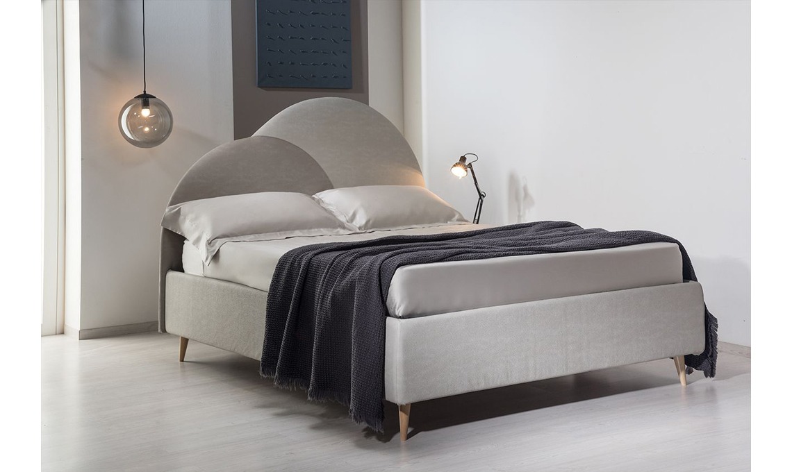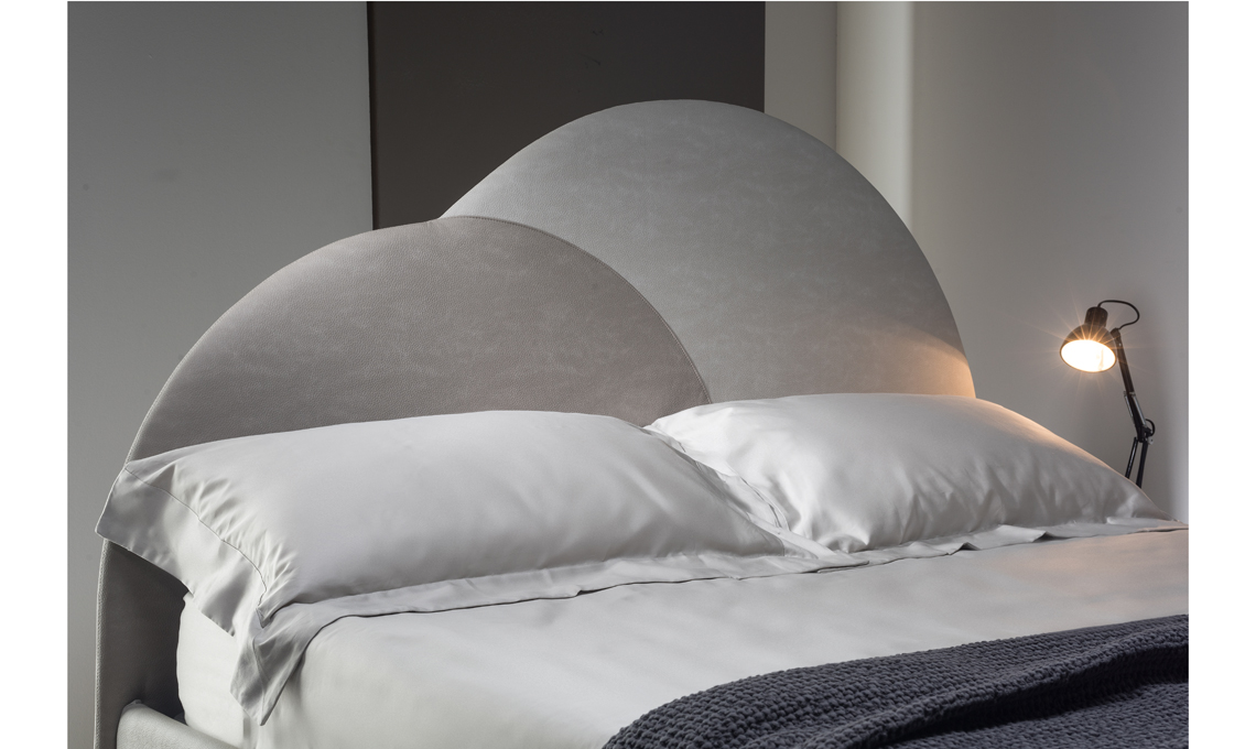 Abbraccio è un letto matrimoniale con fondo contenitore, per arredare e tenere tutto in ordine. Il suo segno distintivo è certamente la testata imbottita a doppia sagomatura, che si trasforma in base al colore e al tessuto (intrecciato e velluto, microfibra o antimacchia, microfibra effetto pelle o riciclato): hai a disposizione oltre 330 colori possibili!