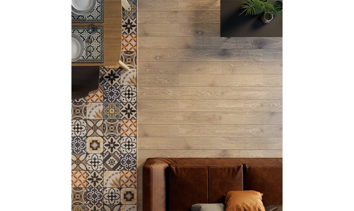 Adori lo stile shabby e nordico? Leroy Merlin ti consiglia un abbinamento unico, leggero, elegante e delicato come un cristallo di neve. Al Parquet Rustic Rovere Bianco associa le Piastrelle Serie Villandry in grès porcellanato, dai disegni delicati che creano un pattern diverso ma armonico sia nello stile che nei colori.
