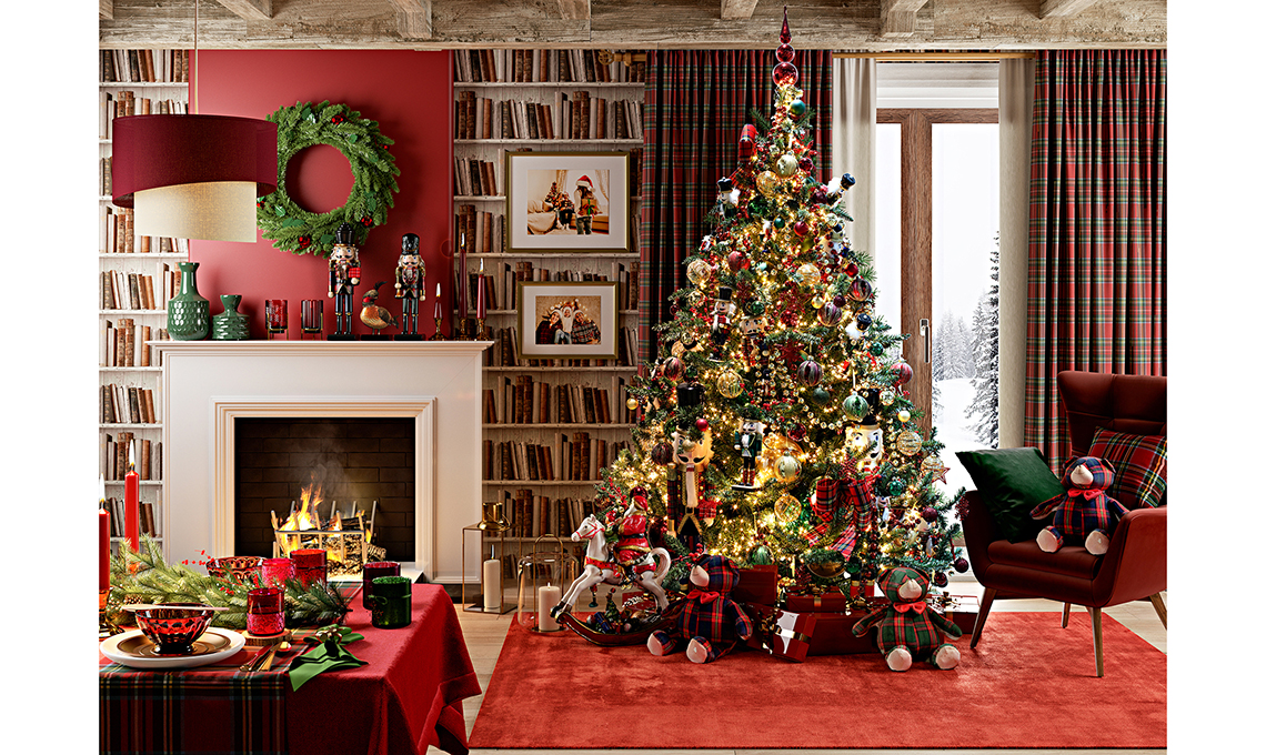Lasciati trasportare dall’atmosfera e in un attimo sarai in un caldo casale di campagna... Qui tutto è sotto il segno del rosso, con bagliori dorati e accenti di verde e blu. Grande protagonista lo scozzese e poi schiaccianoci e orsetti di ogni misura, veri must del Natale più classico.