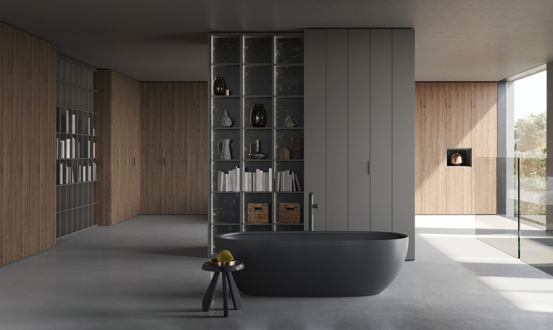 Inoltre Freedhome® diventa bifacciale: il Sistema si unisce a Boiserie, dando vita a una superficie uniforme e continua che libera tutto il suo potenziale, mentre la schiena dei moduli si trasforma in una parete funzionale, contribuendo a creare un ambiente straordinariamente armonioso.