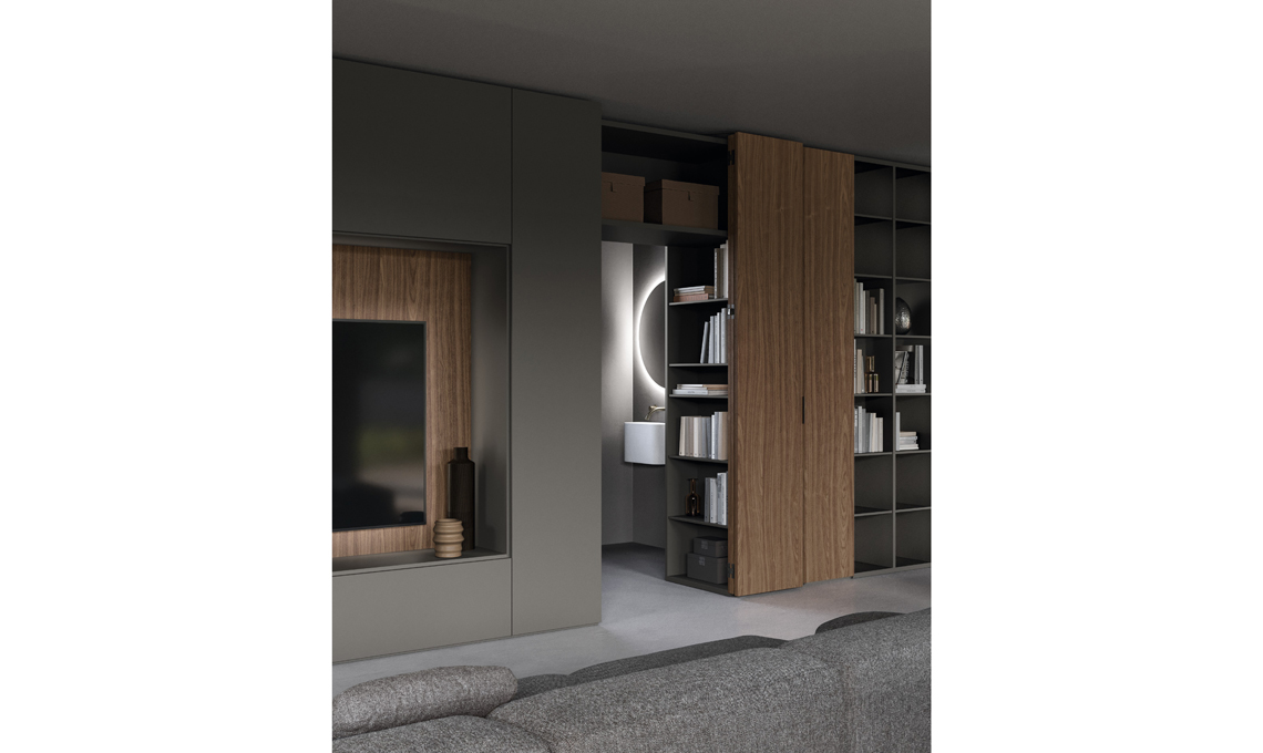 Il sistema si integra poi perfettamente con Wallover® e Architype™, diventando esso stesso una parete polifunzionale che separa e organizza gli spazi. Ogni elemento è caratterizzato da funzionalità nascoste, come accessori ed elementi divisori, oltre a una gestione innovativa della luce, che apre nuove e scenografiche prospettive luminose. In alternativa, la parete può scomparire completamente, offrendo una nuova interpretazione dell'arredamento che valorizza e esprime il valore architetturale dello spazio.