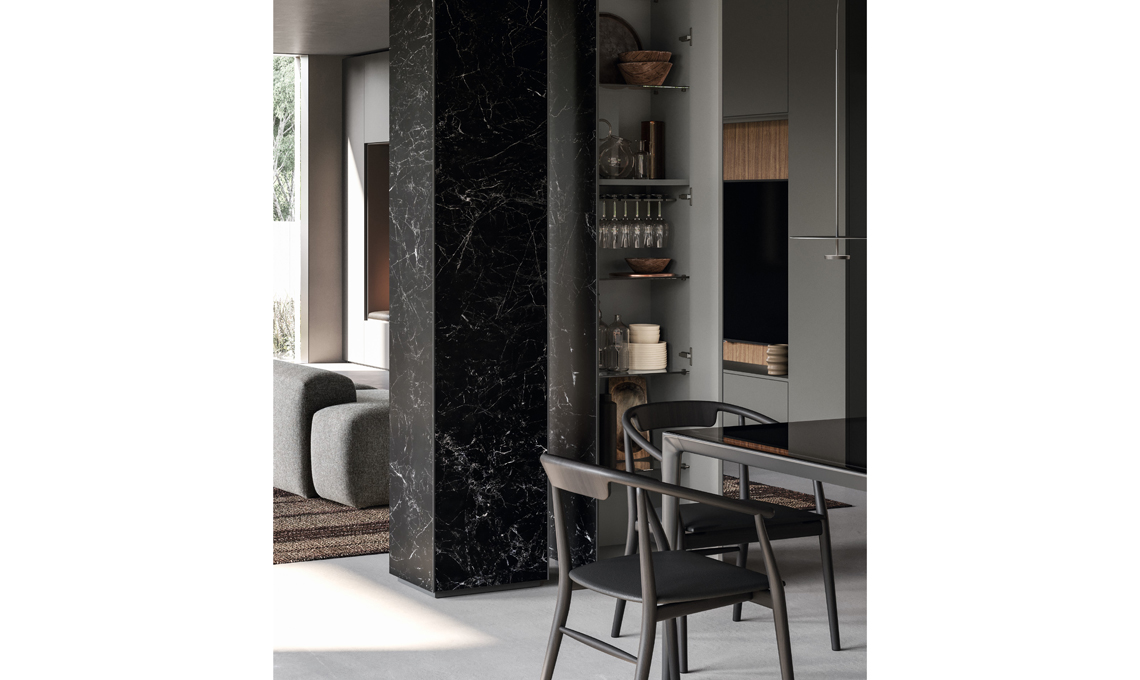Non solo le dimensioni, ma anche le finiture offrono una totale libertà compositiva. Dalle esclusive essenze in Eucalipto, Rovere e Noce, con una vena continua, alle finiture in Kera, che riproducono l'aspetto della pietra naturale, fino alle finiture in Oxid, caratterizzate dalle movimentate nuvolature metalliche; si aggiunge anche una rinnovata palette di Laccati, che soddisfa ogni esigenza estetica.