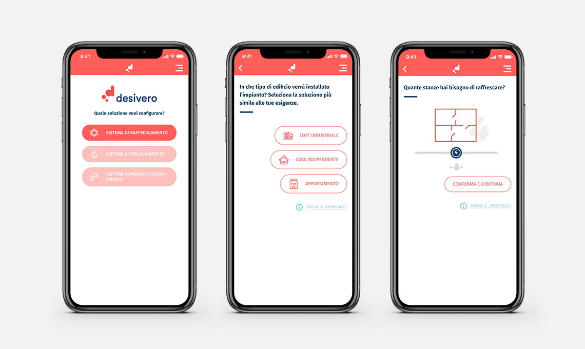 Wizard Desivero è nato dalla collaborazione con un ingegnere dell’Associazione Italiana Condizionamento dell’aria Riscaldamento e Refrigerazione (Aicarr), progettisti termotecnici, idraulici termotecnici, un’agenzia web e un’agenzia che ha curato il layout grafico ed è il modo più smart per garantirti il clima ideale in casa, tenendo sempre sotto controllo spese e consumi. Scoprilo su desivero.com.