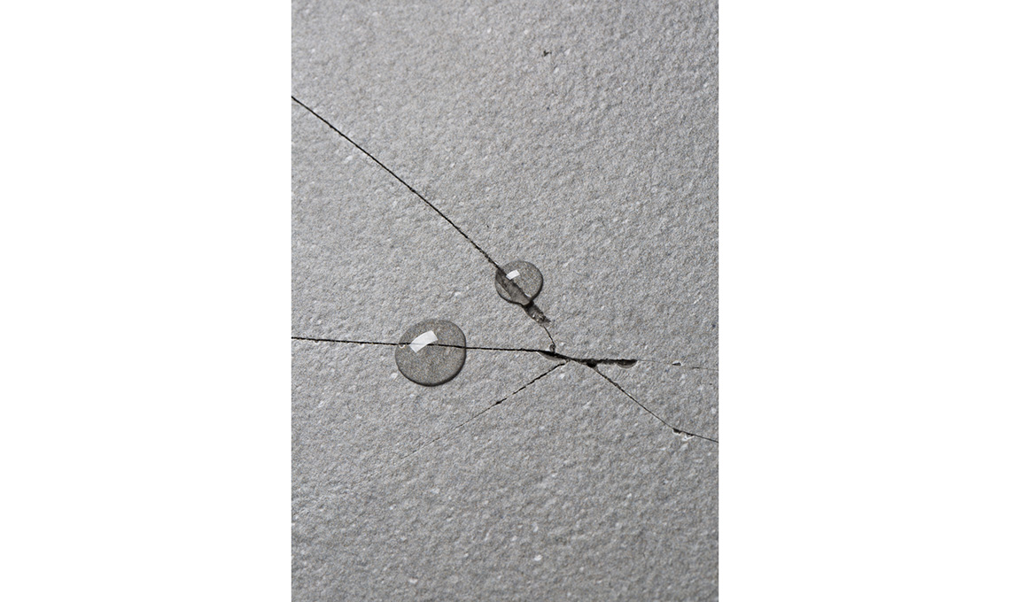 L’acqua non penetra grazie all’azione consolidante del prodotto. Nella foto a destra, la tipica conseguenza di una terrazza con problemi di infiltrazioni: l’acqua, non trovando nessuna barriera, penetra nella superficie e percolando, forma muffe ed efflorescenze che possono causare gravosi danni alle strutture