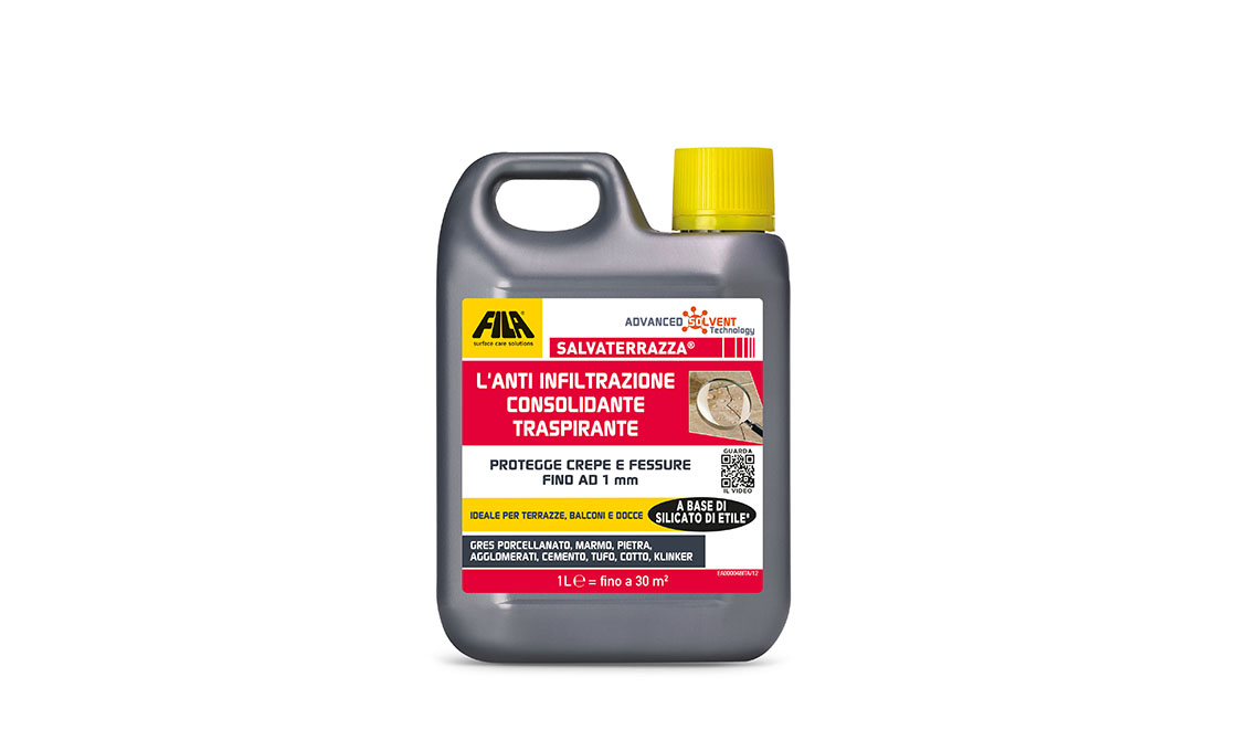Lo step successivo è proprio questo: SALVATERRAZZA che deve essere applicato sulla superficie asciutta e pulita. Lo si può applicare con un pennello o con un vello spandicera, impregnando bene fughe e fessure. Se il materiale è molto assorbente, come ad esempio la pietra naturale, potete dare due mani di prodotto. Con l’applicazione di SALVATERRAZZA potrai proteggere la superficie dall’acqua e dall’umidità grazie al suo potere anti-infiltrazione, conferendo caratteristiche idrorepellenti e consolidando la superficie penetrando in profondità nel materiale.