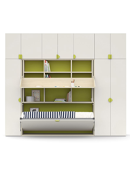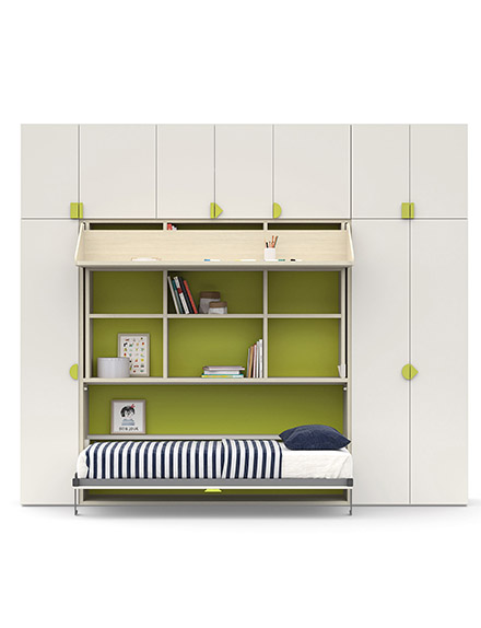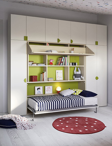 Spazio agli amici anche con Twiddy, un letto a scomparsa che chiuso sembra un semplice mobile, mentre aperto è un comodo letto pronto per gli amici da cui i ragazzi non vogliono separarsi. Ma c'è di più: Twiddy è personalizzabile con pomoli e appendiabiti per sfruttare al meglio gli spazi anche quando è chiuso.
