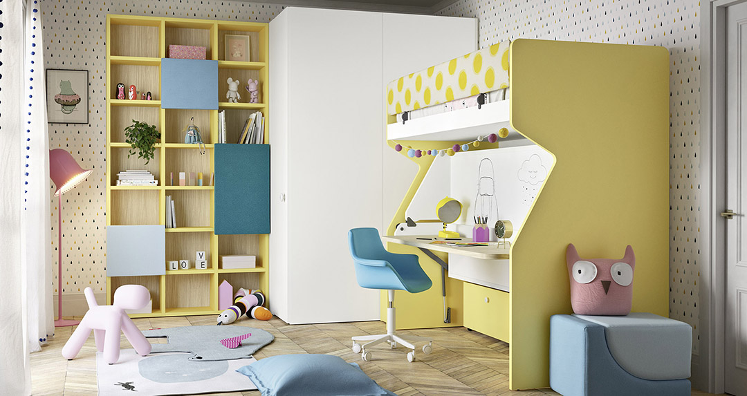 Nidi è design e colore, emozione e flessibilità. Tutti gli elementi di ogni cameretta – armadi, librerie, ponti, cabine, contenitori ed elementi del sistema Loop, il sistema multifunzione che permette di organizzare al meglio gli spazi – sono disponibili in tante varianti per adattarsi a ogni architettura e creare uno spazio davvero a misura della propria personalità, nel rispetto dell'ambiente.