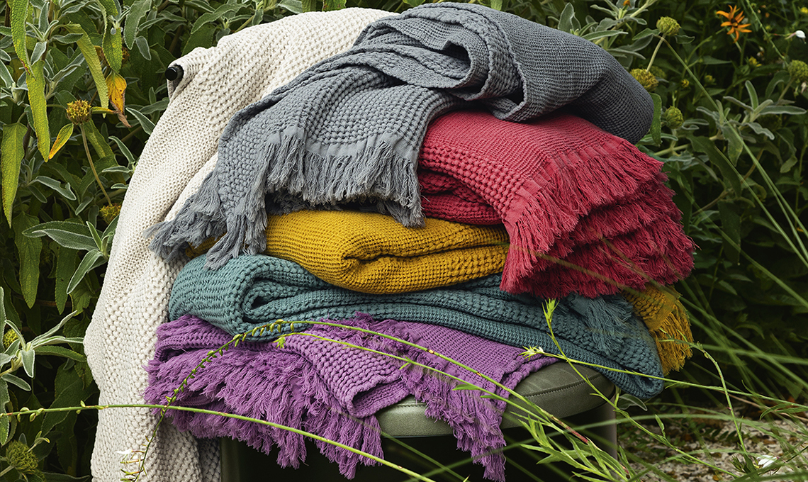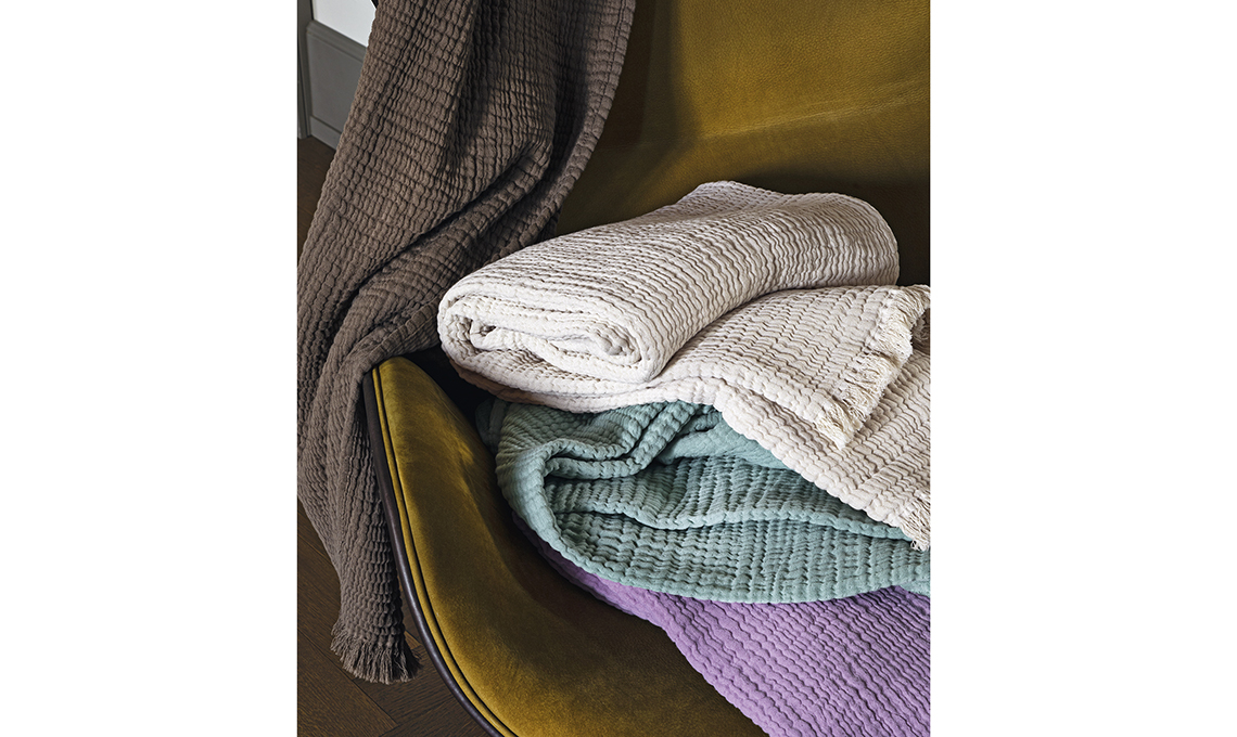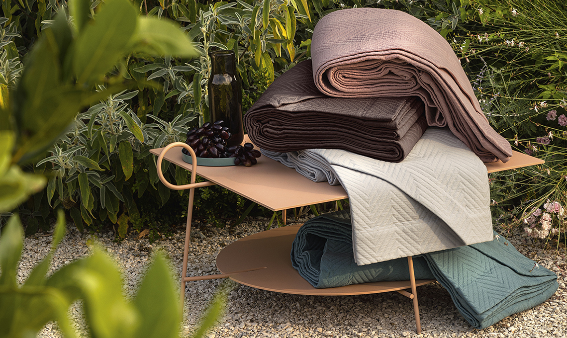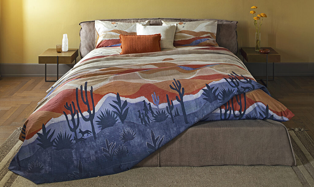 Completi letto, lenzuola, copripiumini, plaid e cuscini ma anche morbidi asciugamani: scopri la nuova collezione Primavera Estate 2024 di Fazzini tra colori caldi, trame preziose e decori grafici.
