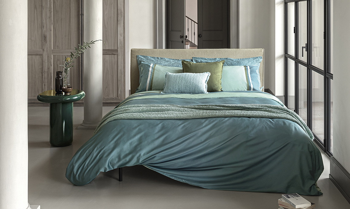 Vista l'importanza del riposo iniziamo dalla camera da letto. Come rinnovare i colori senza cambiarli davvero? Scegli nuovi tessili per il letto!