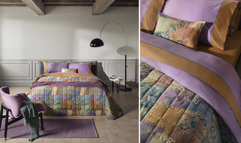 Completo lenzuola, quilt e cuscino Crazy Quilt; plaid Incontri [Fazzini].
