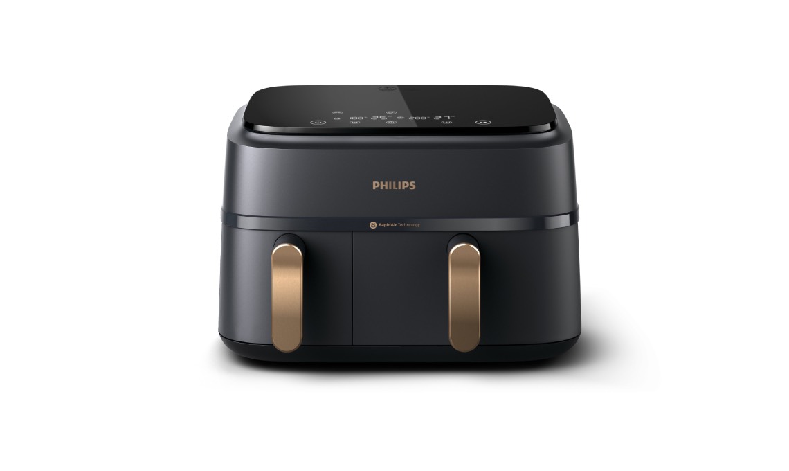 8. Friggitrice ad aria Serie 3000 Airfryer con doppio cestello per cuocere insieme piatto principale e contorno [Philips].