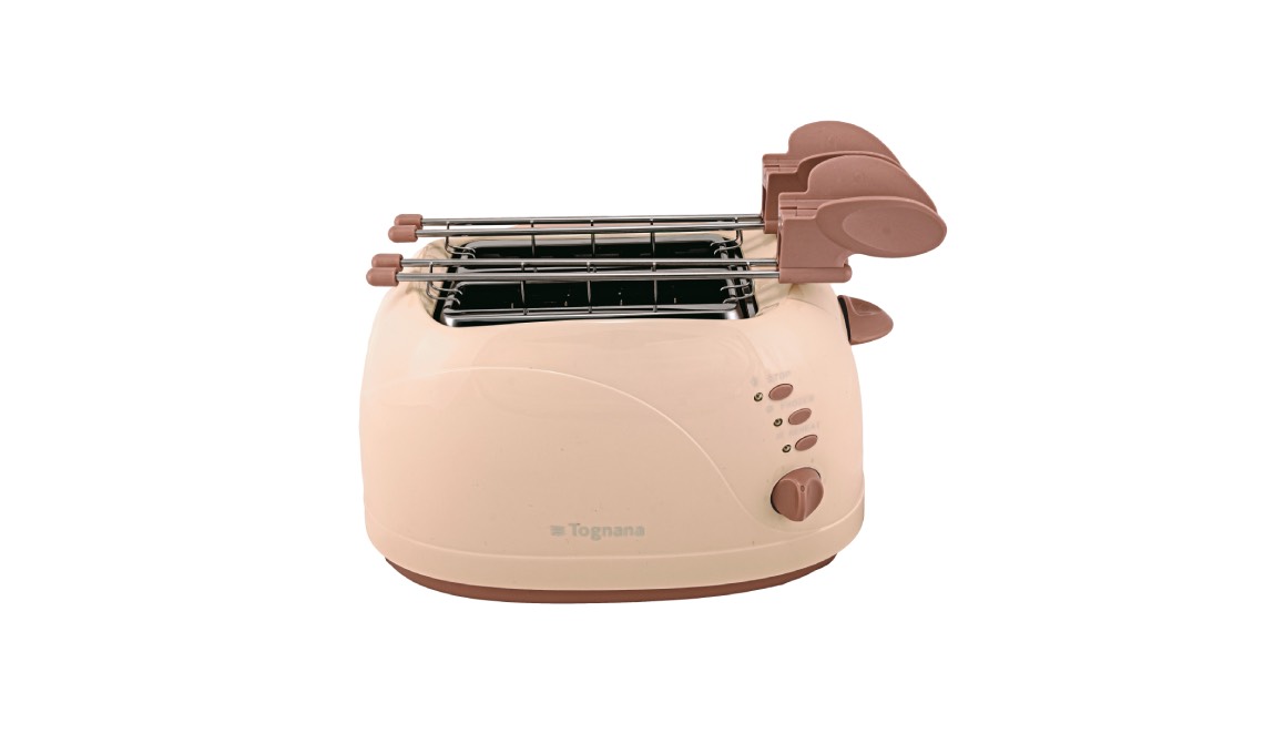 9. Tostapane elettrico Iridea con due griglie dalle pinze Champagne, 4 funzioni, 6 livelli di doratura e cassetto raccoglibriciole [Tognana].