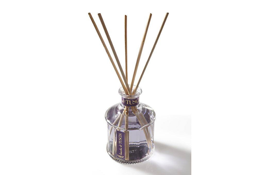 Bacche di Tuscia, profumatore ambiente Luxury. Un profumo ammaliante e misterioso dalla magica terra di Tuscia, caratterizzato da note di testa fresche e fruttate, un cuore fiorito e un tocco di fondo speziata [Erbario Toscano, 250 ml € 39].