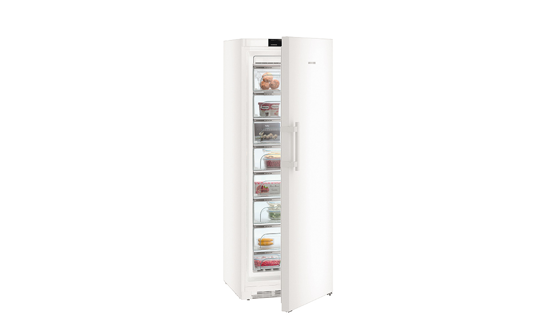 In classe di efficienza energetica A+++ -20%, suddiviso in 8 cassetti trasparenti e con illuminazione interna a Led, GNP 5255 ha un volume utile di 360 litri. È dotato di tecnologia NoFrost e in caso di black out mantiene gli alimenti fino a 20 ore [Liebherr, cm 70x75x195h €1.749].