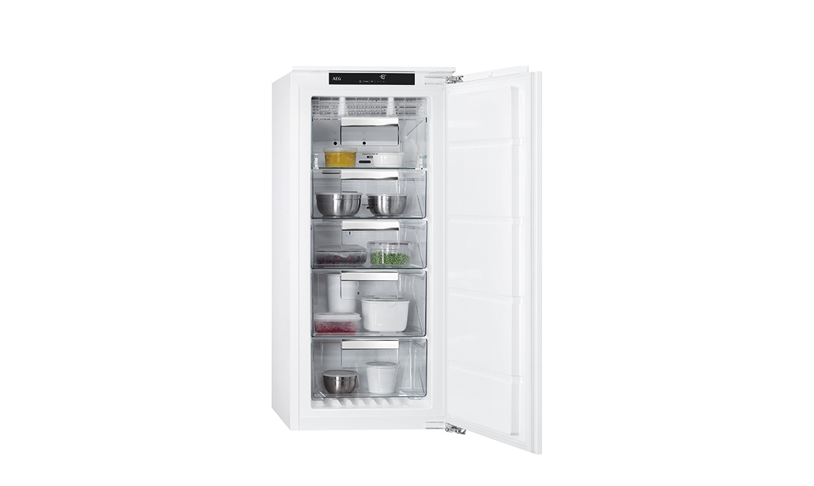 In classe A++, il congelatore monoporta da incasso ABE 81226 NC è dotato di funzione NoFrost che impedisce la formazione di brina sulle pareti. Suddiviso in 5 scomparti, ha volume utile di 122 litri e un’autonomia di 22 ore in caso di black out [Aeg, cm 55,6x55x123,8h prezzo da rivenditore].