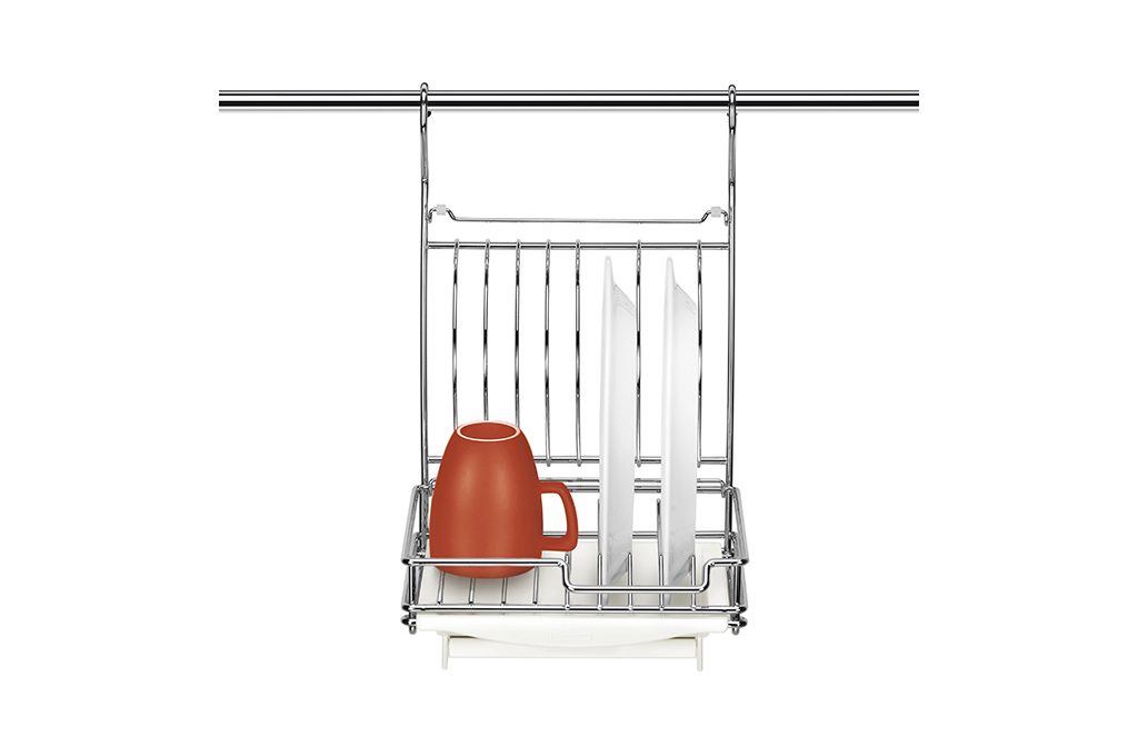 Scolapiatti in acciaio da aggiungere alla barra portautensili in cucina [Tescoma, cm 25x26x42h €34,90].