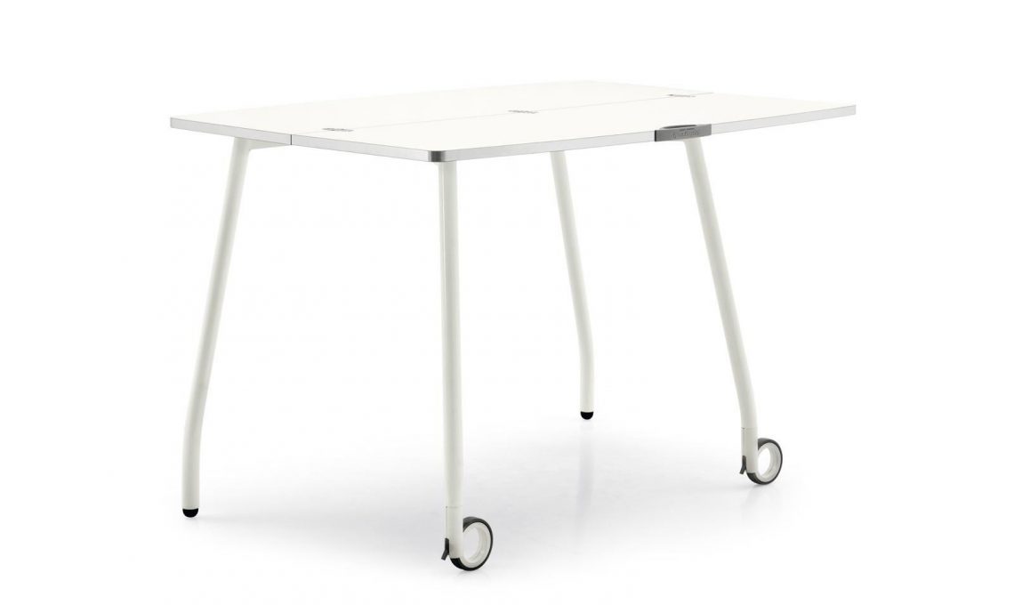 Tavolo Bletz pieghevole, all'occorrenza diventa console in legno e metallo [Calligaris, cm 110x80x76h €400].