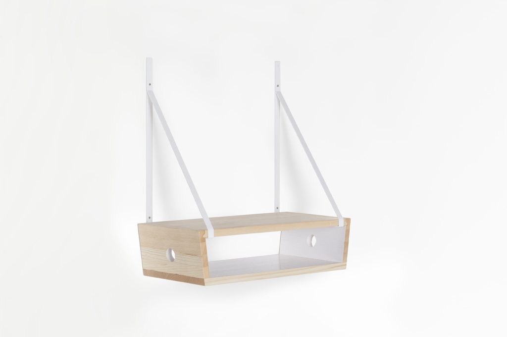Mensola Miro con lunghe staffe metalliche, in frassino [Formabilio, cm 61x29,5x52,5 €192].