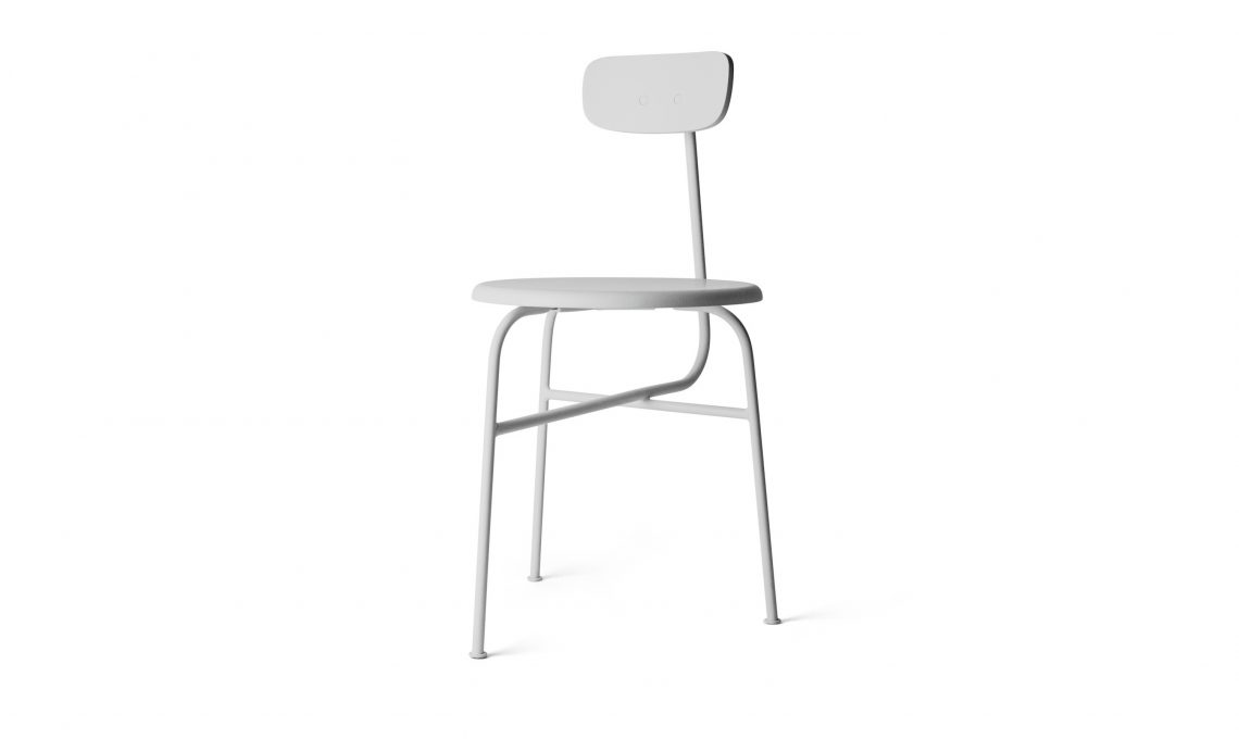 Sgabello in tondino d'acciaio con schienale flessibile e tre gambe, Afteroom [Menu, cm 43x54x77h €220].