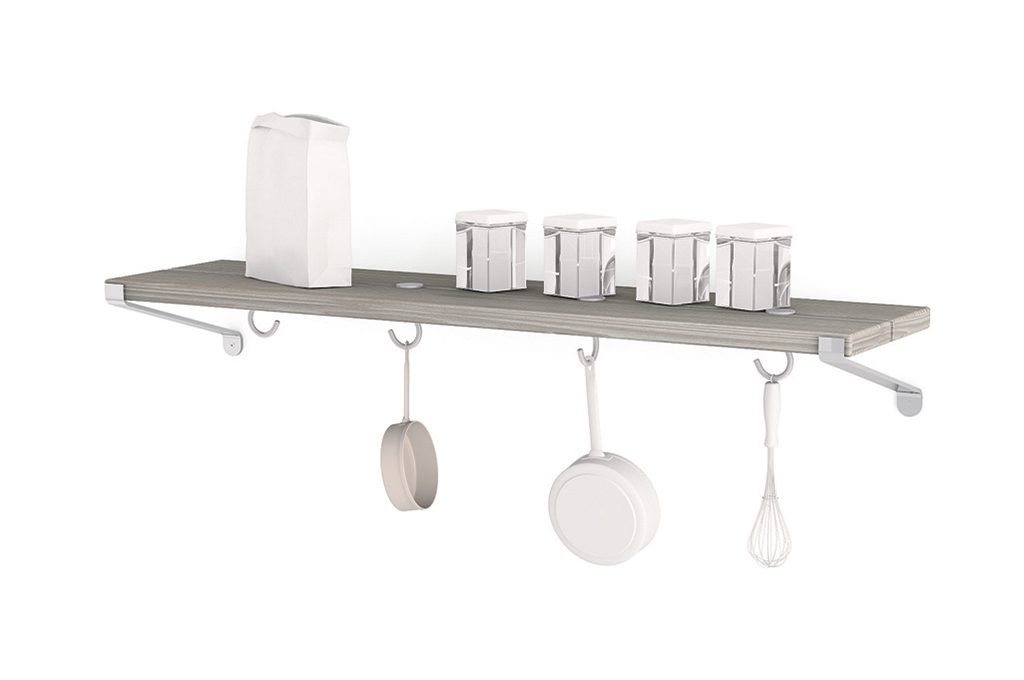 Mensola in abete spazzolato personalizzabile e anche su misura, ganci in acciaio [Scandola, a partire da €185/metro].