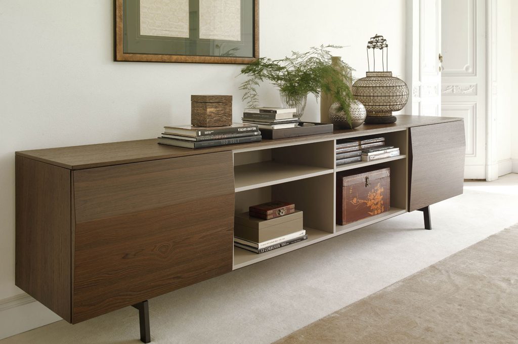 Ha due ampi vani contenitori e due a vista, la madia in rovere Amsterdam [Bontempi Casa, cm 260x53x72h €2.500].