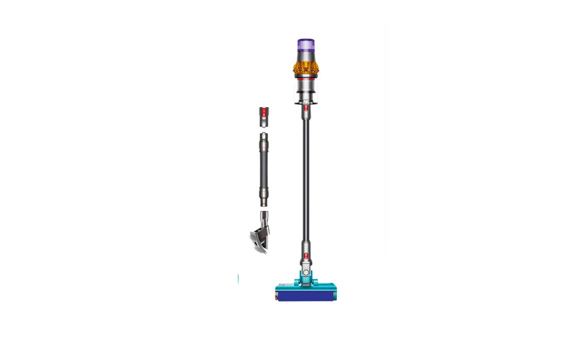 Accessoriabile con il kit per la toelettatura degli animali domestici a pelo medio e lungo, V15s Detect Submarine™ aspira e lava. Cattura capelli lunghi e peli e li convoglia nel suo contenitore. Autonomia 60’ [Dyson]