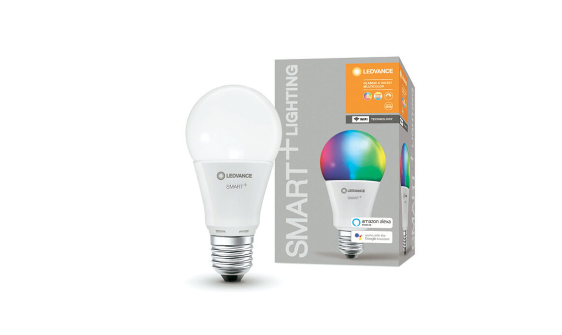 La lampadina a Led Ledvance Smart+ WiFi in classe A+ può essere gestita anche in modalità wireless. È compatibile con Google e Amazon Alexa. Offre un’illuminazione bianca calda, fredda o multicolore [Ledvance € 17,90].