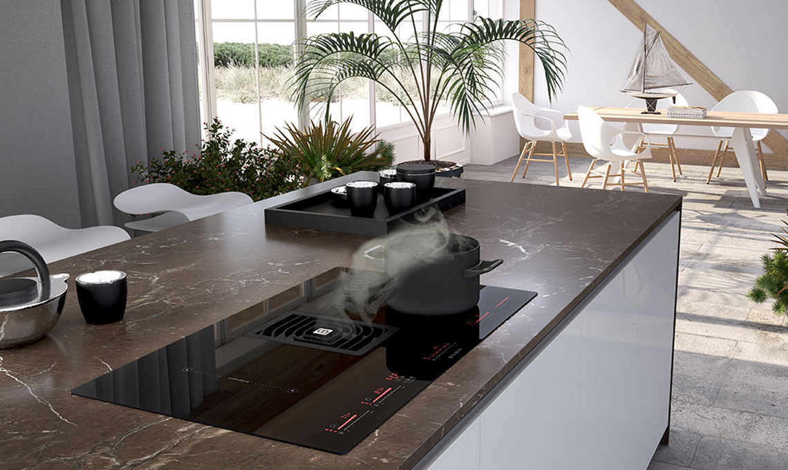 Il piano cottura con la cappa integrata – in pratica due elettrodomestici in uno – è ideale negli ambienti piccoli, negli open space e per cucinare su un bancone a isola. Combina design e praticità. E se non conosci questa soluzione, qui rispondiamo a ogni tua domanda.