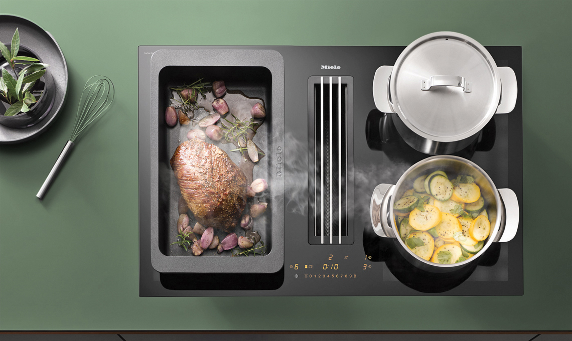 Twoinone KMDA 7476 ha due zone PowerFlex XL per pentole e padelle e con la funzione TwinBooster puoi distribuire la potenza come vuoi. Con la funzione Con@ctivity 3.0 la potenza della cappa si adegua alle impostazioni del piano cottura [Miele, cm 80]