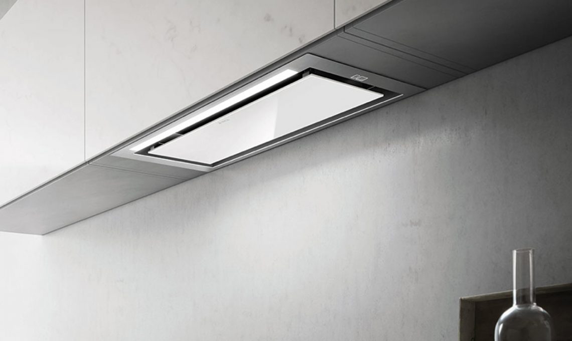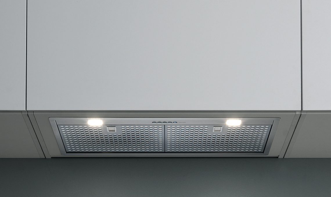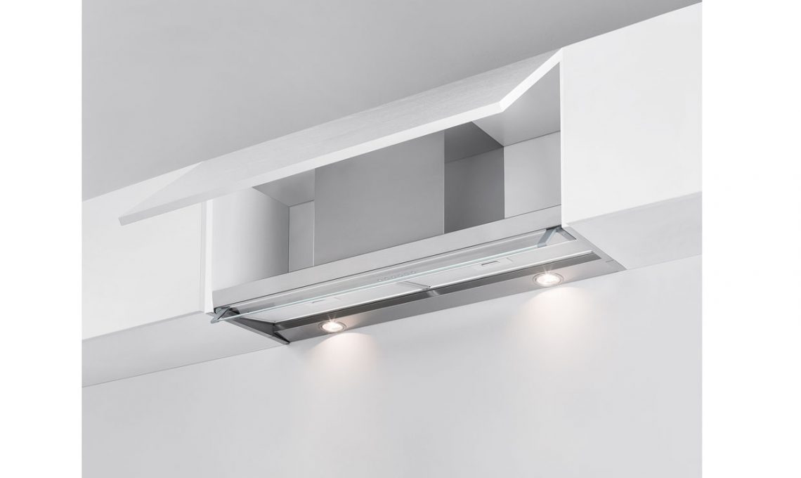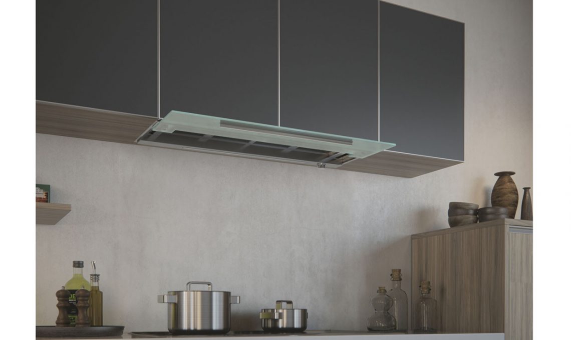 Ideali per mini-ambienti o per non spezzare la formale continuità di cucine minimaliste in linea, sono ‘invisibili’ perché integrate nel pensile sopra il piano cottura e aspirano fumi e odori convogliandoli in un’apposita tubazione che li espelle all’esterno.