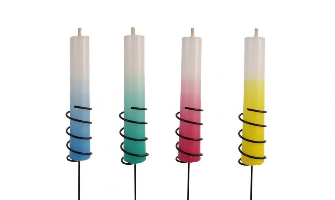 Un’altra soluzione per creare una bella atmosfera la sera è quella di usare candele: quelle di &Klevering hanno un supporto di metallo che si pianta nel terreno e sono quindi ideali per illuminare angoli o sentierini all’interno del giardino, magari durante una bella festa d’estate.