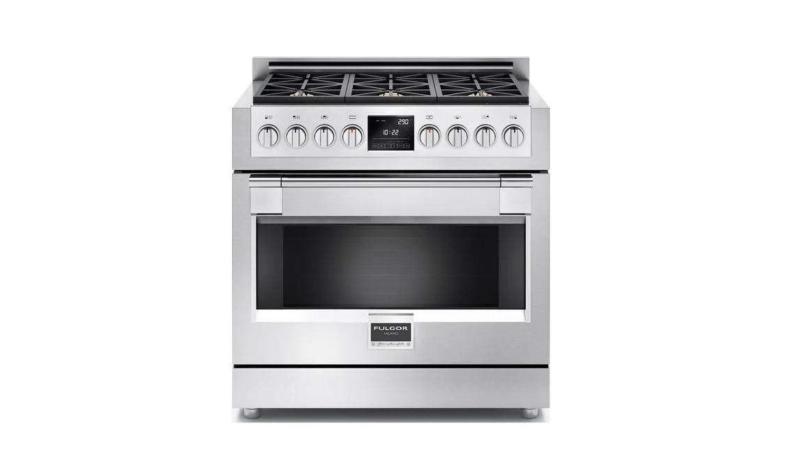 Cucina in acciaio con fronte smaltato, 6 fuochi di ghisa, griglia e doppio forno, Genesi 120 [Steel]
