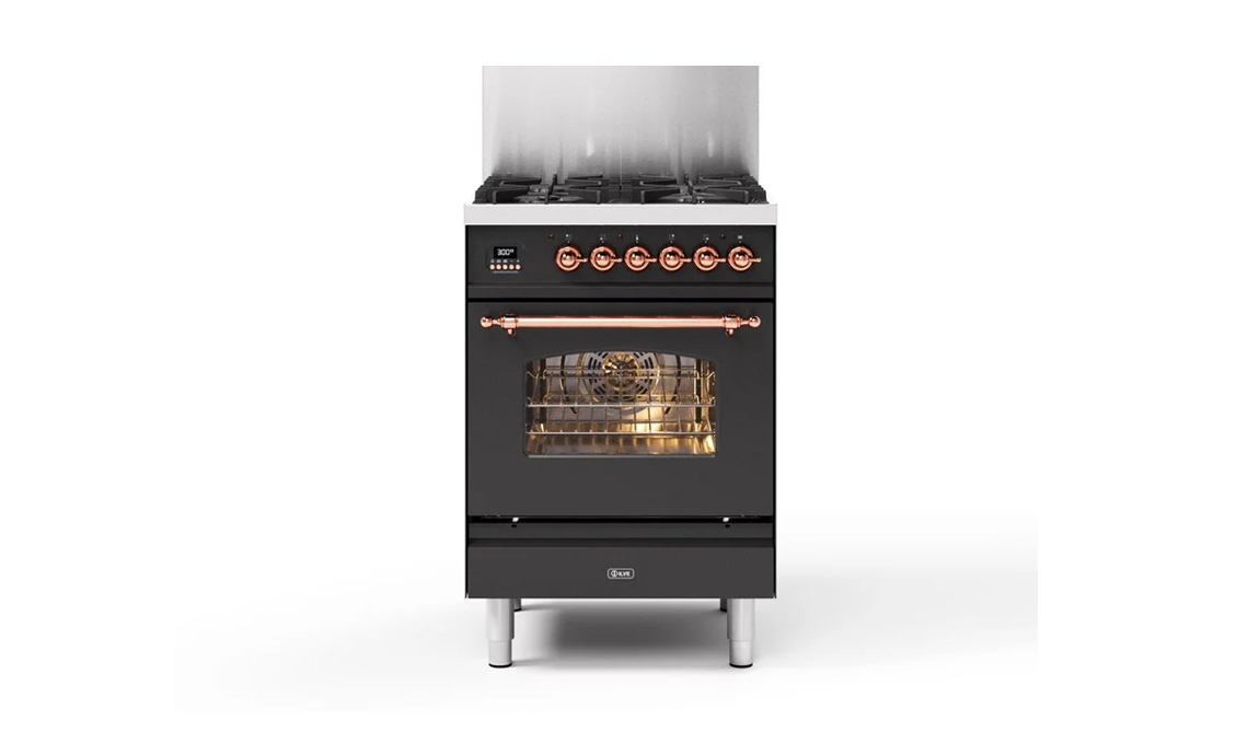 Cucina in acciaio con finitura nero opaco, con piano in ghisa, Enfasi 90 All Black [Steel]
