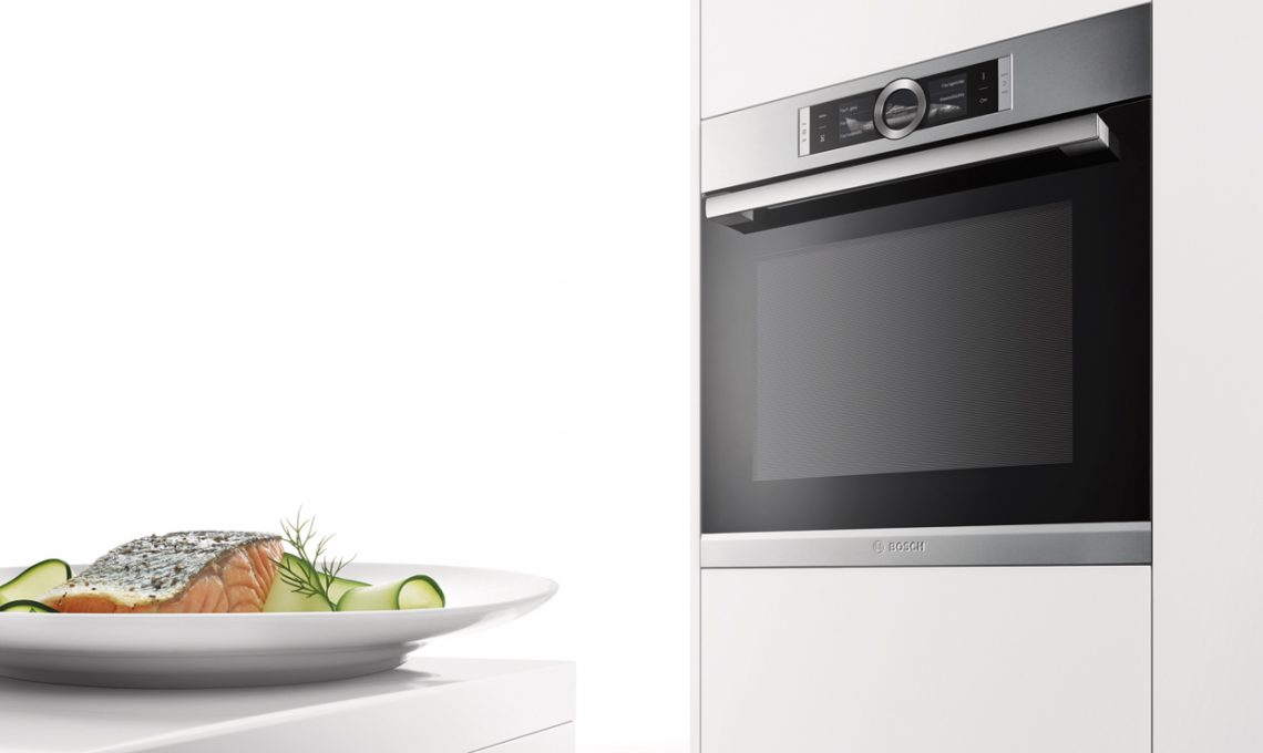 I sensori di precisione PerfectBake e PerfectRoast del forno Serie 8 da 71 litri misurano l’umidità delle pietanze e la temperatura interna dei cibi, regolando in automatico la cottura, che risulta perfetta [Bosch, cm 59,5x54,8x59,5h].