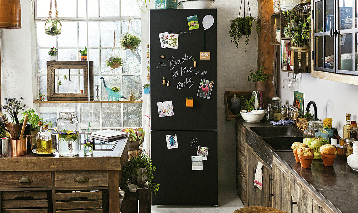 - CoolCreative KG7493B40 di Neff, dalla superficie magnetica e scrivibile, offre piani scorrevoli e cassetti combinabili a piacere. Il frigorifero è in classe A+++ con un volume da 435 lt.