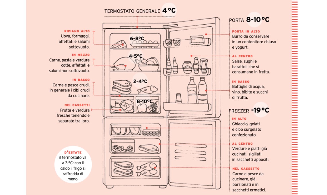 Ecco come riporre i cibi in frigo e freezer in base ripiani e temperature.